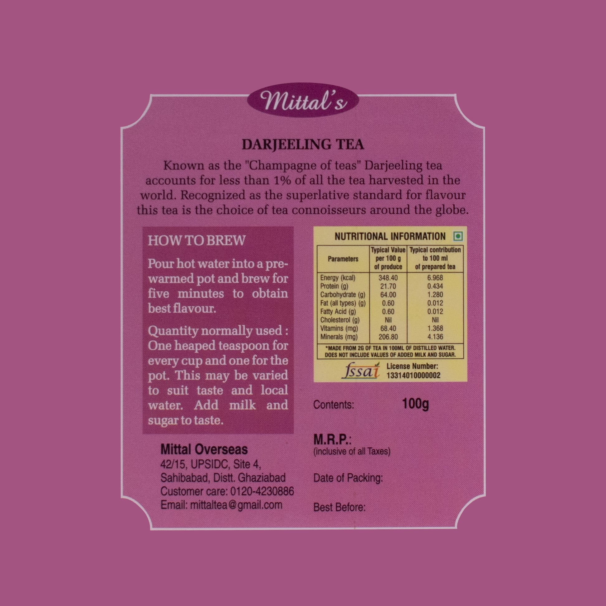Ingredients: Darjeeling Black Tea Leaves