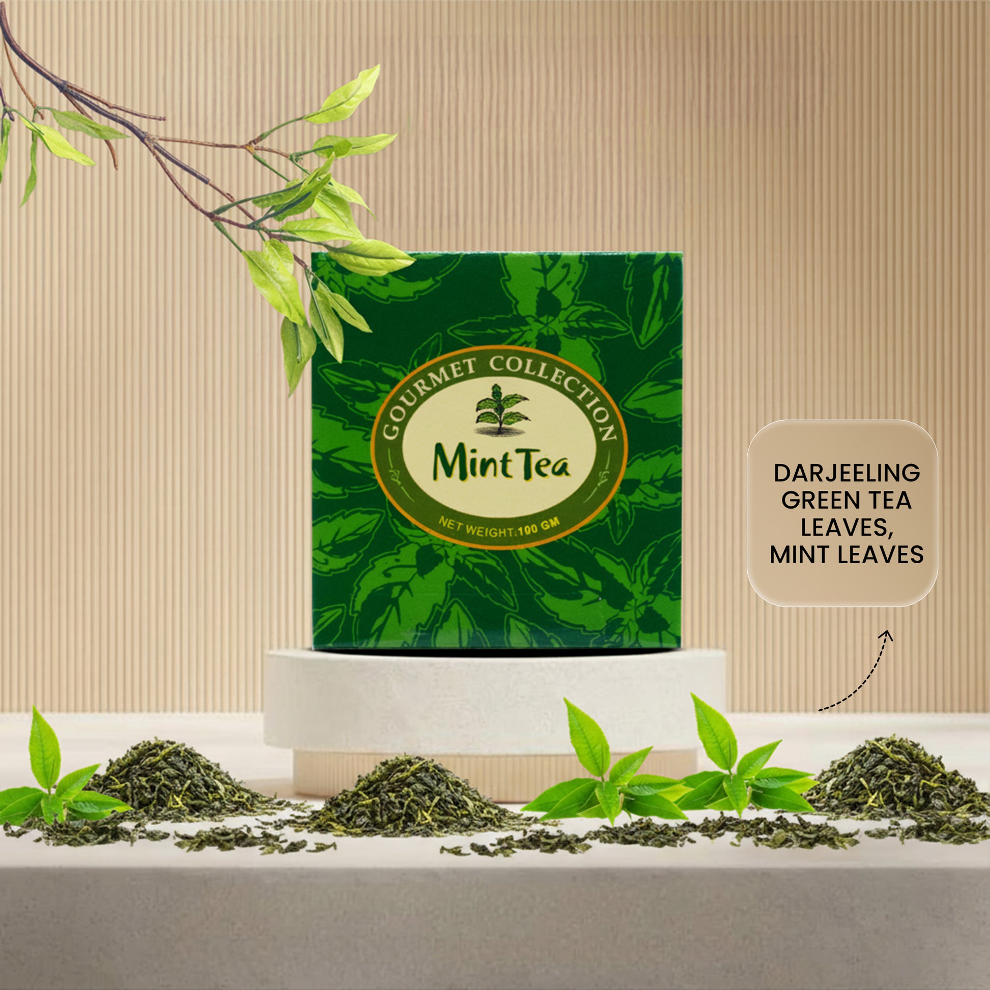 A cool and refreshing blend that harmoniously combines the smooth, gentle taste of Darjeeling green tea leaves with the crisp, invigorating essence of mint leaves. This revitalizing infusion awakens the senses, promotes digestion, and provides a natural boost of freshness with every sip. Perfect for a calming yet energizing tea experienceβideal to enjoy hot or iced.