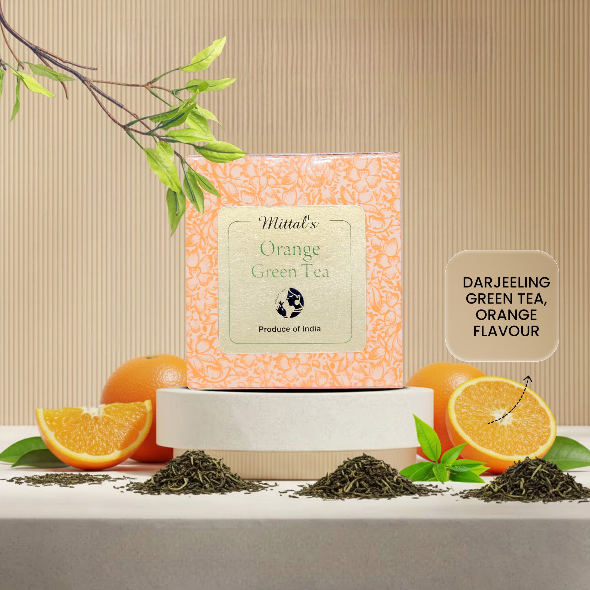 A zesty and aromatic blend that brings a burst of citrus freshness to every cup. Orange Tea combines the bold, malty richness of Darjeeling black tea leaves with the lively, tangy notes of orange flavour, creating a bright and invigorating infusion. Orange Green Tea pairs the smooth, grassy undertones of Darjeeling green tea with the same refreshing orange essence, offering a light, energizing brew that awakens the senses. Perfect for a cheerful start to your day—enjoyed hot or iced.