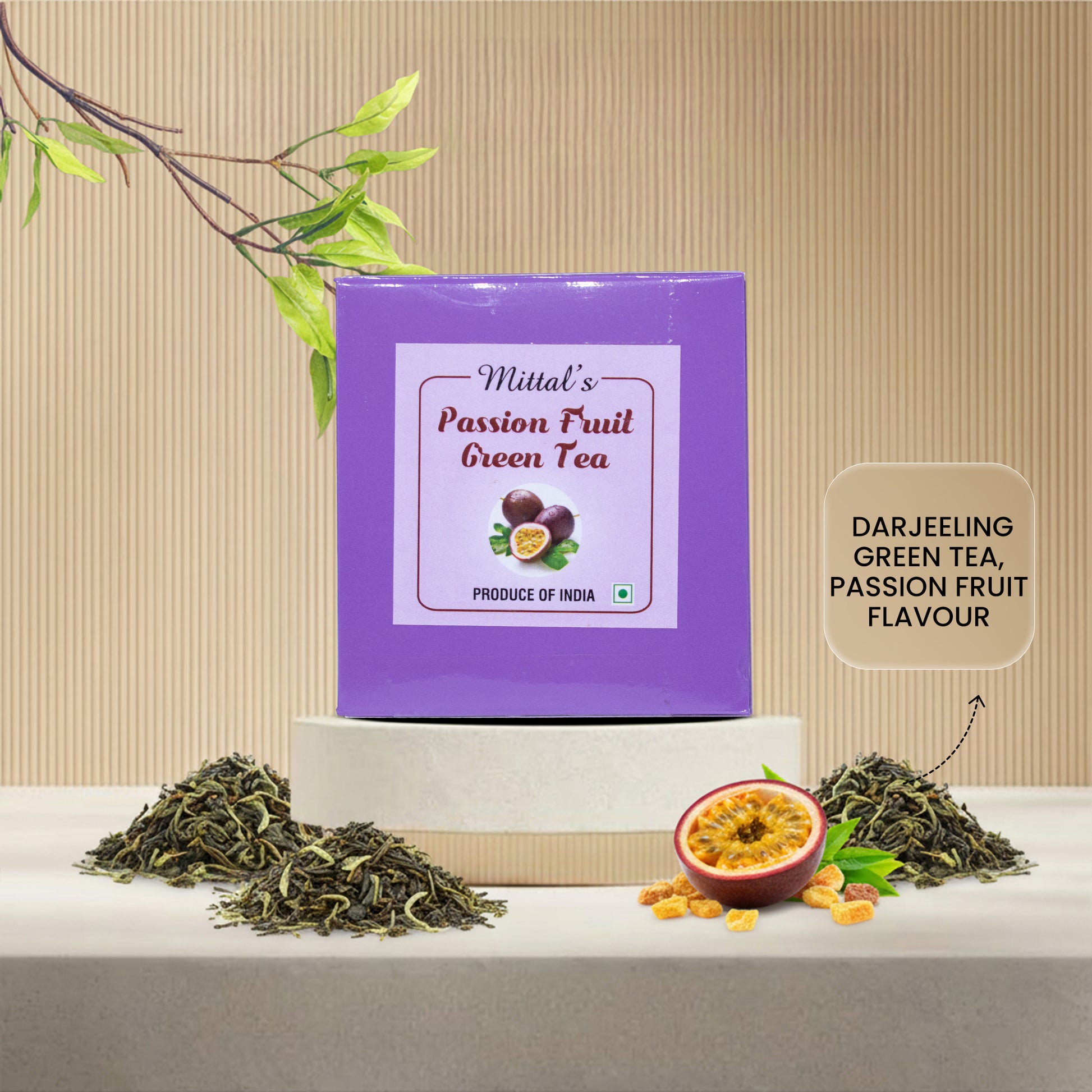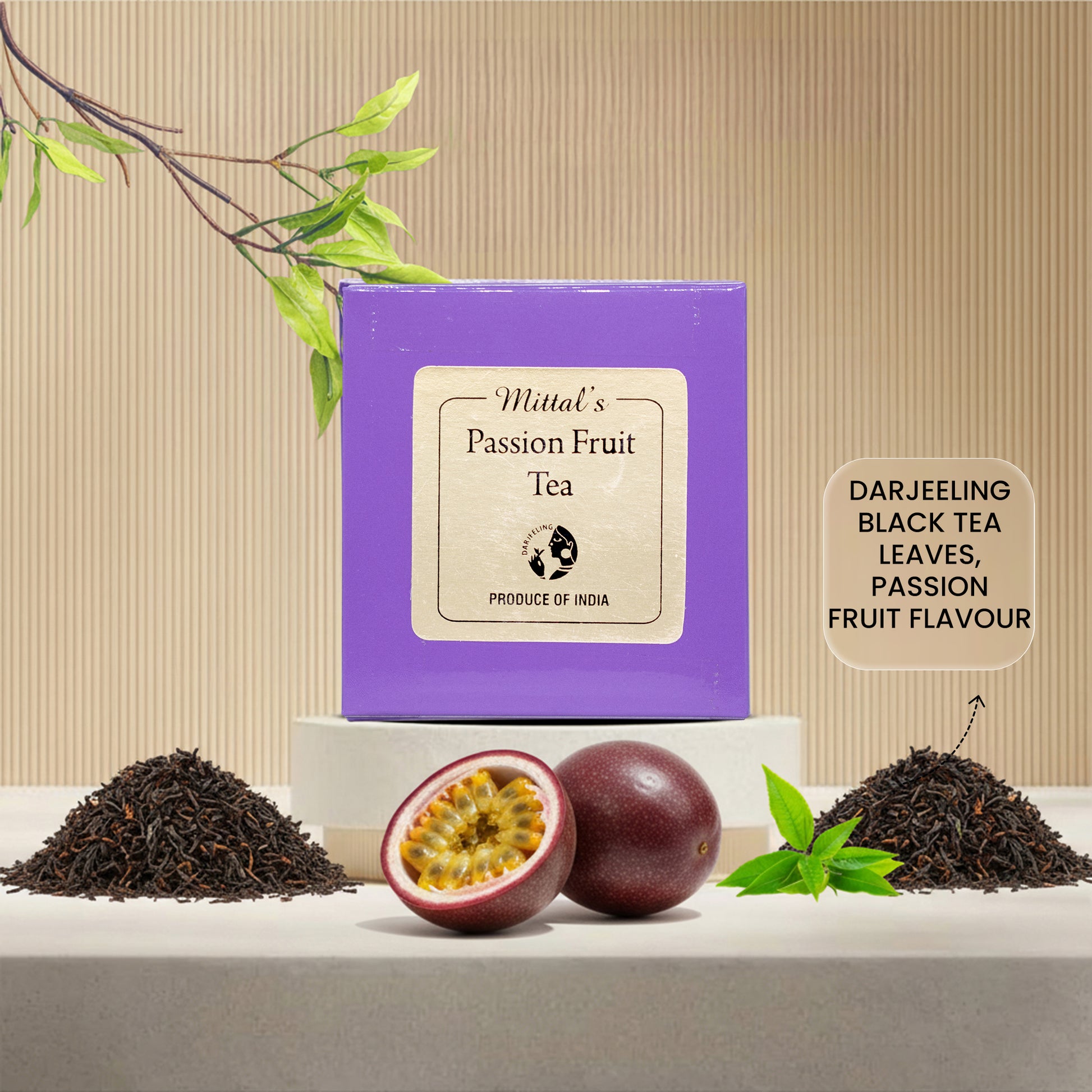 An exotic and refreshing blend inspired by the tropical sweetness of passion fruit. Passion Fruit Tea combines the bold, malty richness of Darjeeling black tea leaves with the vibrant, tangy notes of passion fruit flavour, creating a lively and aromatic infusion. Passion Fruit Green Tea pairs the delicate, soothing character of Darjeeling green tea with the same tropical essence, resulting in a light, rejuvenating cup that energizes the senses. Perfect for a refreshing escape — hot or iced.