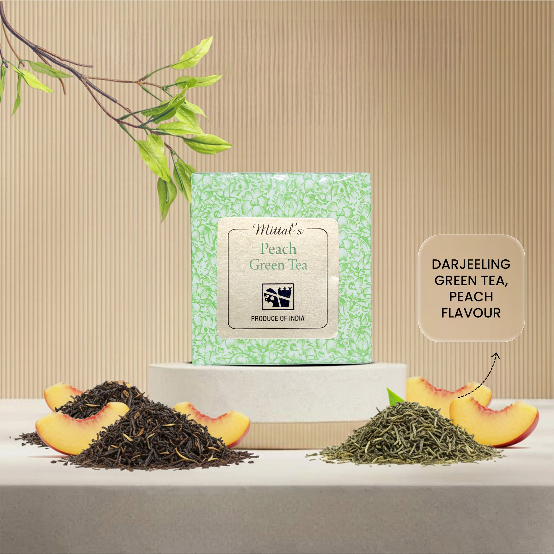 DARJEELING BLACK TEA LEAVES, PEACH FLAVOUR/ DARJEELING GREEN TEA, PEACH FLAVOUR