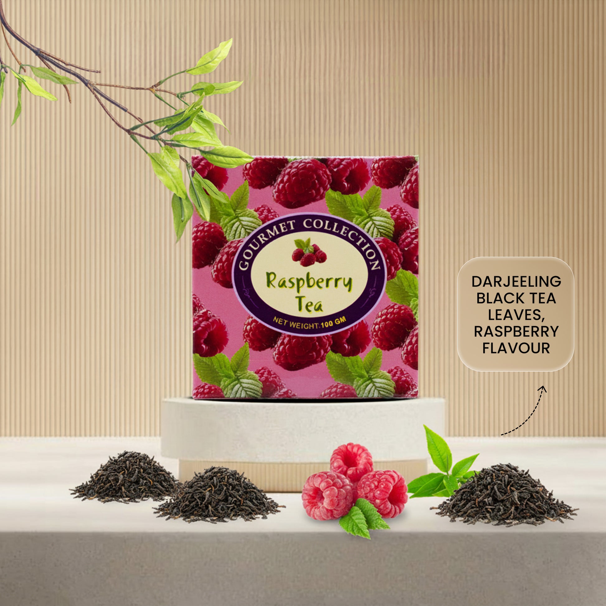 A vibrant and fruity blend that pairs the bold, malty character of Darjeeling black tea leaves with the sweet and tangy essence of raspberry flavour. This refreshing infusion offers a lively burst of berry aroma and a perfectly balanced taste—smooth, juicy, and naturally uplifting. Ideal for a rejuvenating cup that can be enjoyed hot or iced, any time of the day.