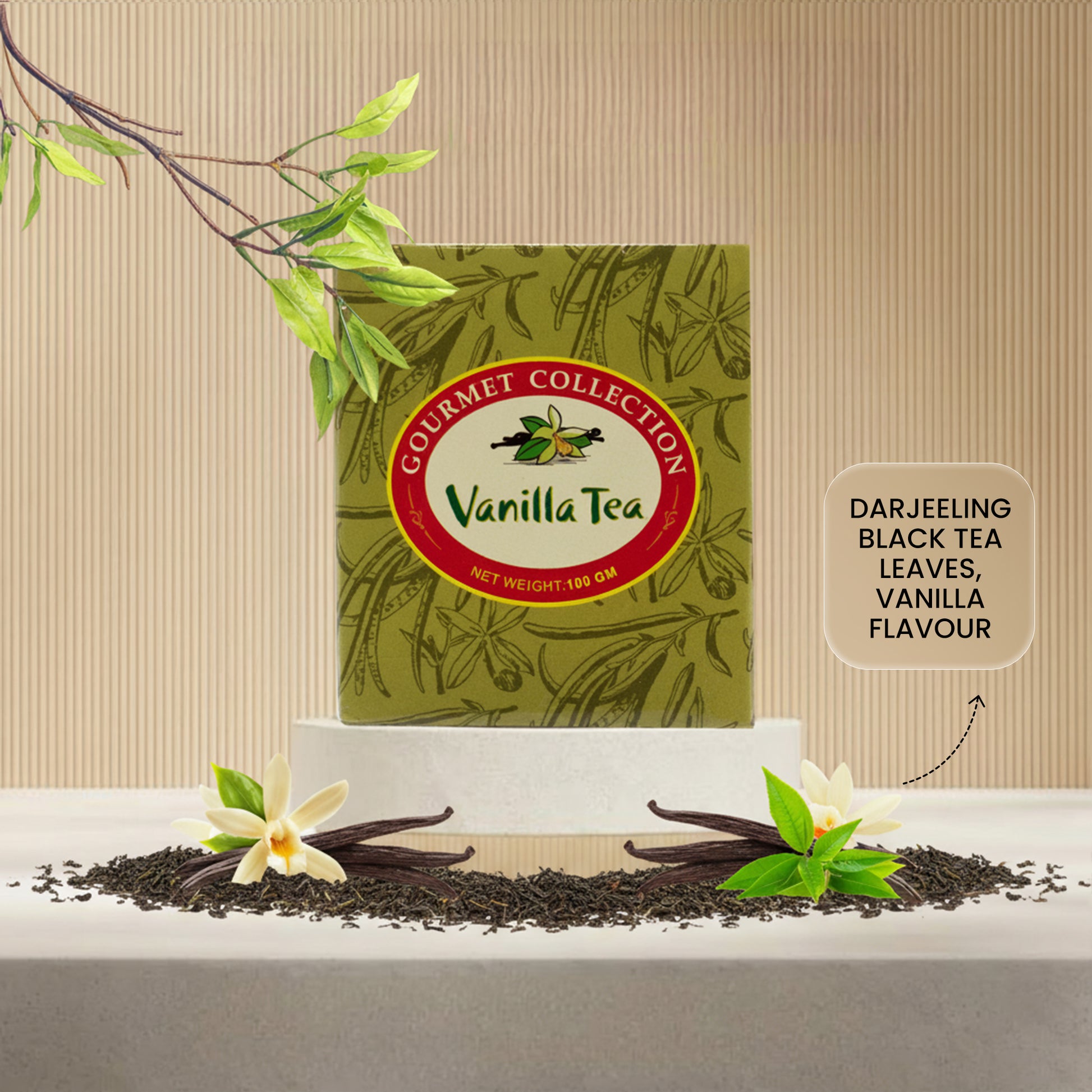 A smooth and comforting blend that combines the rich, full-bodied taste of Darjeeling black tea leaves with the creamy sweetness of vanilla flavour. This aromatic infusion offers a perfectly balanced cup with a warm, soothing aroma and a mellow, velvety finish. Ideal for a relaxing tea break, it’s a delightful choice for those who enjoy a touch of sweetness in every sip.